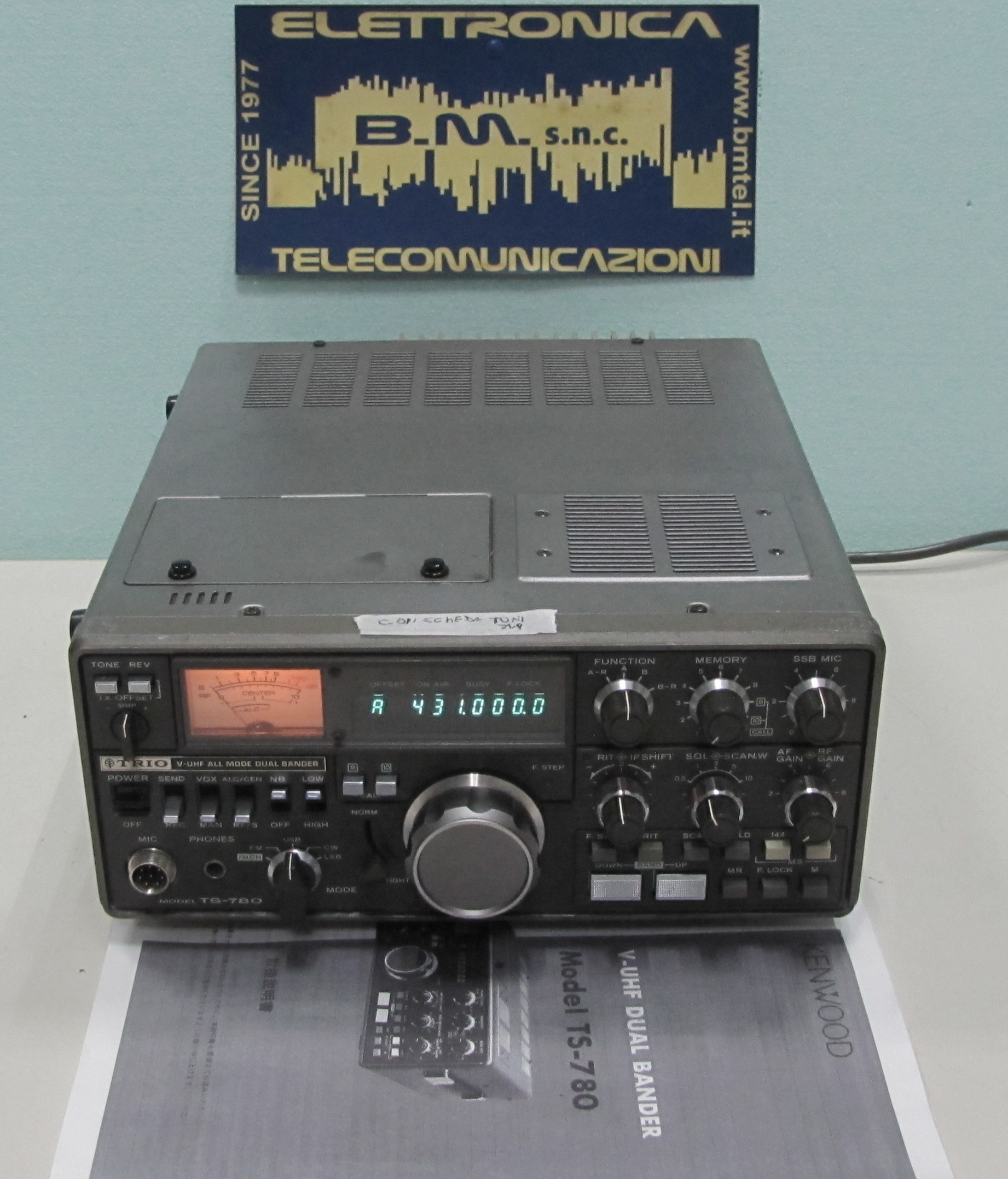 Ricetrasmettitore base VHF/UHF TS-780 di seconda mano. Il ricetrasmettitore multimodale Kenwood TS-780 offre funzionamento a 2 metri e 440 MHz in modalità FM, LSB, USB e CW. La potenza di uscita può essere selezionata a 1 watt (FM) o 10 watt (FM/SSB/CW). La copertura di frequenza è 144-146 MHz e 430-440 MHz. Il pannello posteriore presenta un SO-239 per i 2 metri e un jack N per i 440 MHz. Il pannello posteriore dispone anche di un jack per altoparlante, un jack per tasto CW e una presa AUX. Uno sportello sul pannello superiore consente di regolare: livello portante, tono, anti-vox.…COMPLETO DI SCHEDA TONI PER ACCEDERE SUI PONTI RADIO.